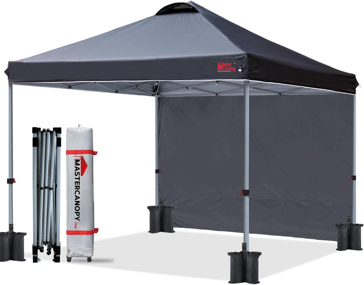 Compact 10x10ft size, ideal for small outdoor events.Waterproof and UV-resistant canopy material.